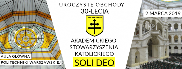 Więcej informacji o uroczystych obchodach 30-lecia istnienia Akademickiego Stowarzyszenia Katolickiego Soli Deo znaleźc można na naszej stronie internetowej oraz na naszym profilu na Facebooku.