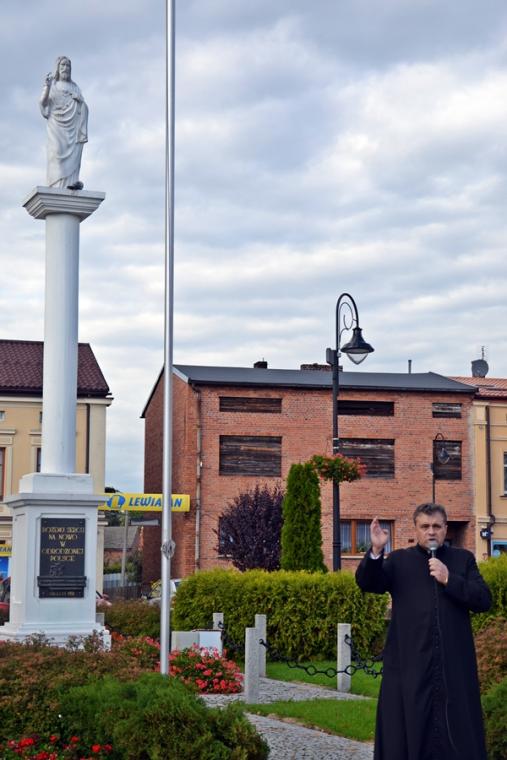 Dzień ten był szczególny jeszcze z jednego powodu. W tym dniu ze wszystkich zakątków świata popłynęła ku niebu modlitwa Koronką do Miłosierdzia Bożego na ulicach miast. Wielkie wołanie „o miłosierdzie dla nas i świta całego” popłynęło ku niebu z różnych miejsc. Mikstacka parafia włączyła się w tę modlitwę po raz piąty. O godzinie 15:00 pod przewodnictwem ks. proboszcza Krzysztofa Ordziniaka spotkaliśmy się na Rynku przy pomniku Najświętszego Serca Pana Jezusa. To szczególne i ważne miejsce dla naszej wspólnoty. Został on poświęcony 12 lipca 1936 roku. To wtedy ówczesny burmistrz p. Franciszek Toboła wypowiedział słowa Aktu poświecenia się miasta Najświętszemu Sercu Jezusa.