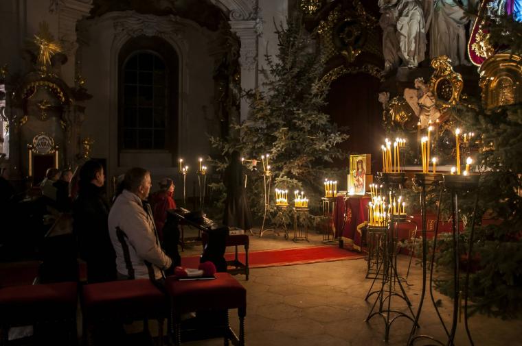 O godz. 16,30 w uroczystej procesji, cudowny wizerunek, został przeniesiony do ołtarza głównego, przy którym sprawowana była wieczorna Msza Święta na zakończenie rekolekcji adwentowych, które prowadził ojciec Dariusz Dąbrowski ze Świętej Góry w Gostyniu.