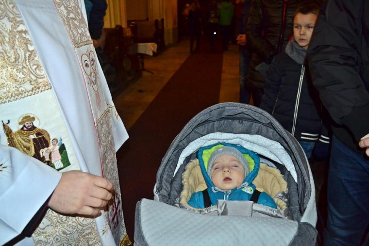 Jest już tradycją w mikstackiej wspólnocie parafialnej, że u progu Nowego Roku sprawowana jest Msza Święta w intencji dzieci z naszej parafii połączone z indywidualnym błogosławieństwem dla nich. Radością duszpasterzy parafii byli licznie zgromadzeni na Mszy św. o godz. 16:00 rodzice wraz ze swoimi dziećmi. "Pozwólcie dzieciom przychodzić do mnie, nie zabraniajcie im, bo do takich należy królestwo Boże” (Mk 10, 14-15) powiedział Jezus do uczniów, którzy chcieli, by odpoczął nieco i starali się nie dopuszczać do niego dzieci. Mszę Świętą o błogosławieństwo Boże dla dzieci sprawował ks. wikariusz Krzysztof Lipiński. Homilię w czasie tej Mszy Świętej wygłosił ks. proboszcz Krzysztof Ordziniak. Zwrócił w niej uwagę na problem pokoju w różnych wymiarach. Podkreślił, że u progu Nowego Roku nie wiemy co on nam przyniesie, to wie tylko Bóg, który jest dawcą pokoju. Pokój jest największym pragnienie każdego człowiek. W homilii ks. kan. Krzysztof powiedział: „ Jeżeli będziemy się starali, aby w naszych sercach był Bóg, wtedy będziemy ludźmi prawdziwego , gdy zaś w naszych sercach będzie zło, to będziemy ludźmi wojny i niepokoju. Z serca ludzkiego bowiem pokój promieniuje i rozszerza się na dom, rodzinę, szkołę, zakład pracy, wieś, miasto i cały naród”. Tego pokoju w rodzinach, w ludzkich sercach potrzebują do wzrastania w łasce u Boga i ludzi, dzieci które zostały przyprowadzone, przyniesione przez swoich rodziców. Ponadto kaznodzieja przywołał cztery rady Tomasza a Kempis zawarte w książce „ O naśladowaniu Chrystusa” które mają pomóc człowiekowi w osiągnięciu prawdziwego pokoju: Staraj się raczej spełniać czyjąś wolę niż własną; Chciej zawsze raczej mniej niż więcej; Szukaj zawsze miejsca ostatniego i ustępuj wszystkim; Chciej zawsze i módl się o to , aby całkowicie wypełniała się w Tobie wola Boża”. Kończąc homilie ks. kan. życzył wszystko w 2017 rok pokoju, który wypływa z czystego sumienia i współpracy z łaską Bożą. Po Mszy Świętej przewodniczący Eucharystii ks. wikariusz Krzysztof odmówił modlitwę błogosławieństwa dzieci. Dzieci wraz z rodzicami stały w tym czasie w szpalerze. Następnie ks. proboszcz i ks. wikariusz udzielali dzieciom indywidualnego błogosławieństwa. Każde dziecko otrzymało naklejkę przedstawiającą Świętą Rodzinę z Nazaretu. Cieszył oczy ciągnący się od balasek aż po chór szpaler rodziców ze swoimi dziećmi. Zaprosili Świętą Rodzinę, by otoczyła opieką ich rodziny, a dzieci z Bożym błogosławieństwem rozpoczęły 2017 rok. Pod taką opieką z pewnością będą wzrastały w wierze, mądrości, w łasce u Boga i ludzi, stając się radością dla swoich rodzin, ale także wspólnoty parafialnej. Wiele rodzin po zakończeniu błogosławieństwa zatrzymała się przy mikstackim Betlejem. Rodzicom dziękujemy z piękne świadectwo wiary i zaufania Bogu.