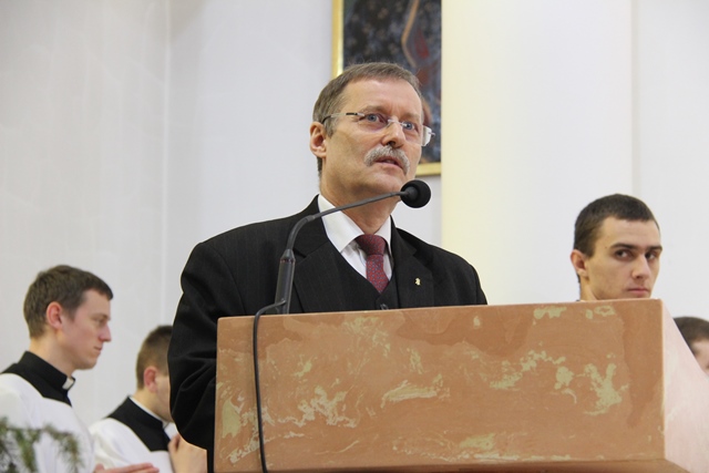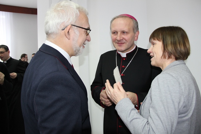 Spotkanie poprzedziła Msza św. w kaplicy Wyższego Seminarium Duchownego w Kaliszu, której przewodniczył biskup pomocniczy diecezji kaliskiej. W homilii bp Buzun nawiązał do zapisków więziennych kard. Stefana Wyszyńskiego. Zacytował fragment tekstu z 24 maja 1956 r., w którym Prymas Tysiąclecia w modlitewnej formie powierza swoje życie Panu Bogu, nie zgadza się na przeszkody wypływające z wnętrza człowieka zakłócające współpracę z Bogiem. Zachęcał członków Akcji Katolickiej do ciągłej pracy nad sobą. – Trzeba wypracowywać w sobie taki styl istnienia, funkcjonowania, poruszania się w świecie, w relacjach międzyludzkich, żeby Boga nie wyprzeć ze swego życia przez grzech naturalizmu, bo to nas niszczy, najbardziej w wymiarze gorliwości i odwagi – powiedział kaznodzieja. Wskazywał, że w życiu człowieka bardzo ważny jest dialog z Bogiem. – Poprzez modlitwę budzimy w sobie człowieka, który jest otwarty na Ducha Bożego – zaznaczył hierarcha. Podkreślał, że Maryja powinna być przewodniczką na drogach życia każdego człowieka. - Prośmy Matkę Bożą, aby przez Jej szczególną opiekę i wstawiennictwo dokonywało się dzieło współpracy z łaską Bożą w naszym życiu, aby ono wydawało piękne owoce w naszej codzienności, środowiskach rodzinnych, społecznych, parafialnych, aby te owoce trwały i pracowały na przyszłość naszego narodu – mówił biskup pomocniczy diecezji kaliskiej. Wraz z biskupem Łukaszem Buzunem modlili się: ks. kanonik Eugeniusz Synowiec, dyrektor administracyjny Wyższego Seminarium Duchownego w Kaliszu, ks. Łukasz Pondel, ojciec duchowny w seminarium i ks. Sławomir Kęszka, asystent diecezjalny Akcji Katolickiej. W czasie Mszy św. przyjęto do Akcji Katolickiej ośmiu nowych członków, którym biskup wręczył odznaki i legitymacje. Po Eucharystii przedstawiciele parafialnych oddziałów Akcji Katolickiej spotkali się z biskupem w refektarzu, gdzie przełamali się opłatkiem. Akcja Katolicka w diecezji kaliskiej została powołana do istnienia przez pierwszego biskupa kaliskiego Stanisława Napierałę w 1995 r. W diecezji istnieje ok. 80 oddziałów parafialnych, do których należy ponad 800 członków. Prezesem Diecezjalnego Instytutu Akcji Katolickiej jest prof. dr hab. Zbigniew Trybuła, a asystentem kościelnym – ks. dr Sławomir Kęszka.