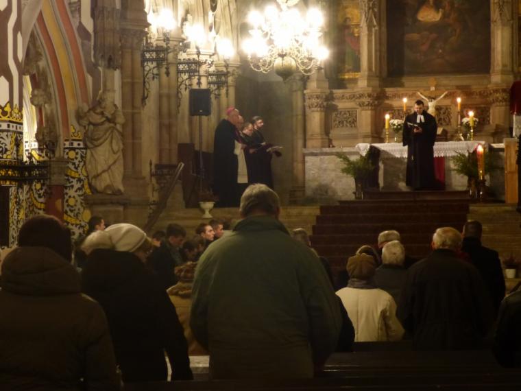 Swoje słowo wygłosili także przedstawiciele pozostałych Kościołów. Biskup legnicki mówił: - Wracanie do jedności według zamysłu Boga, to jest przejaw owocu męki i zmartwychwstania Jezusa Chrystusa. Grzech ludzi rozdzielił, a Jezus Chrystus, wziął go na siebie. Bóg uczynił Go grzechem ze względu na nas, byśmy stali się sprawiedliwością Bożą, to znaczy byśmy mieli zdolność bycia w jedności według zamysłu Boga. Niech ta nasza dzisiejsza wspólna modlitwa i w ogóle wszystkie nasze codzienne postawy będą tymi, które pozwalają zburzyć budowane przez nas mury. Życzę wszystkim, byśmy jak najbardziej w tej tajemnicy się zanurzali i spełniali to, co najbardziej leżało na sercu Jezusowi, abyśmy byli jedno, by świat uwierzył, że Ojciec posłał Go, dla ratowania człowieka, żeby człowiek nie był w rozproszeniu, w walce, w separacji od drugiego. Możemy tylko ufać, że nasze modlitwy a także nasze poddawanie się działaniu Boga, mogą przyczyniać się do tego, żeby to się stawało.