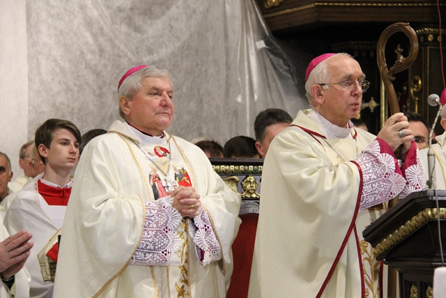 Mszy św. przewodniczył abp Wacław Depo, metropolita częstochowski, przewodniczący Rady ds. Środków Społecznego Przekazu, asystent kościelny przy Krajowej Radzie Katolików Świeckich, członek Sekcji Nauk Teologicznych Komisji Nauki Wiary, członek Komisji Duchowieństwa. Wraz z nim modlili się: biskup kaliski Edward Janiak, bp senior Stanisław Napierała, bp senior Teofil Wilski, ks. inf. Tadeusz Szmyt, wikariusz generalny ks. prał. Andrzej Latoń, o. Tadeusz Rydzyk, kilkudziesięciu kapłanów, wierni z diecezji kaliskiej, a szczególnie dekanatów kaliskiego drugiego, ostrowskiego drugiego i stawiszyńskiego oraz pielgrzymi z całej Polski. W homilii celebrans podkreślał, że Bóg jest jedynym gwarantem życia człowieka. - Wybierając Boga stajemy po stronie życia teraz i w wieczności. Pragnieniem i wolą Boga jest przekazywanie życia i błogosławieństwo – stwierdził abp Depo. Zaznaczył, że współczesny świat próbuje przekazać ludziom program odrywający ich od wiary w Boga i Jego planów, od wiary w Boga żywego i prawdziwego. – Świat ogłasza, że nie ma obiektywnej prawdy, że żyjemy w czasach tzw. postprawdy czyli nieistnienia Boga jako źródła prawdy i życia, a nasza wiara w Niego ogranicza, czy nawet przekreśla ludzką wolność – mówił kaznodzieja. Wskazywał, że Jezus poprzez cierpienie, krzyż i śmierć przywraca człowiekowi prawdziwą godność i wolność dzieci Boga jako mężczyzny i kobiety, jako wspólnoty ludzkiej. - Wybierając życie wybieramy równocześnie Chrystusa i wyrażamy wolę wcale niełatwej drogi, naśladowania Go w codzienności naszych dróg, brania codziennego krzyża, a to oznacza przyjęcie Jego sposobu życia, myślenia, zachowania i modlitwy – podkreślał metropolita częstochowski. Ubolewał, że współczesny świat nie boi się upowszechniać nowego stylu życia rodziny, a nawet zdrady człowieczeństwa. - Najbardziej jaskrawym przykładem jest decyzja Parlamentu Europejskiego z połowy stycznia 2017 roku, który zatwierdził dokument określający prawa robotów i wprowadzający pojęcie osoby elektronicznej. To jest normalny akt formalno-prawny w kierunku antyczłowieczeństwa. Przypisuje się prawa robotom, a odmawia się ich dzieciom poczętym pod sercem matki. Belgia jest pierwszym krajem na świecie, który ma pełnoprawnego obywatela robota zrównanego z prawami ludzkimi. Czy zdajemy sobie sprawę z tego, jak daleko sztuczna inteligencja wkroczyła już w nasze życie, w prawo Europy? W tym miejscu trzeba mocno podkreślić słowa Benedykta XVI, który mówił, że „humanizm bez Boga jest nie tylko antyludzki, ale jest drogą do samounicestwienia” – zauważył hierarcha. Zachęcał do modlitwy do św. Józefa o pogłębianie wiary. - Prośmy przez wstawiennictwo św. Józefa o głębię wiary i posłuszeństwa Bogu we wszystkich naszych wspólnotach rodzinnych i duchowych, we wspólnocie naszej ojczyzny. Uczmy się pilnie w tej szkole Józefa Kaliskiego i prośmy Ducha Świętego o potrzebne światło i pomoc – mówił abp Depo.
