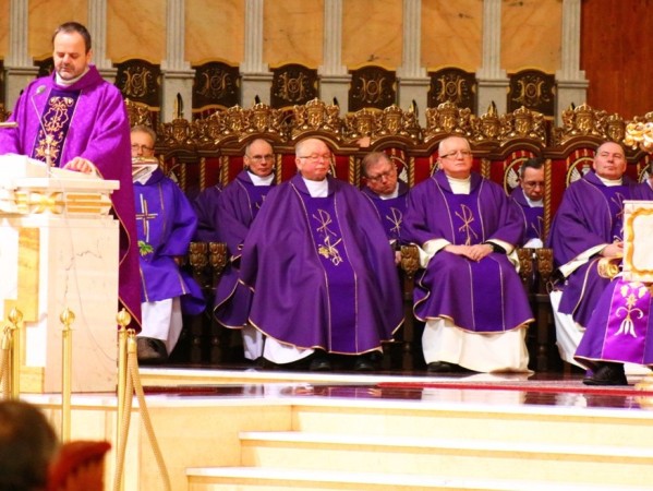 Homilię mariański prowincjał rozpoczął od przywołania słów „Nawracajcie się przez post, płacz i lament” zawartych w dzisiejszej jutrzni. Post rozumiany jako odmawianie sobie tego, co jest dla nas codziennością, z kolei płacz i lament związane są z popełnianymi grzechami, przez które oddalamy się od Boga.Mówił także, iż Bóg jest bogaty w miłosierdzie i hojny w przebaczaniu. Kontynuując swoje rozważania odniósł się do słów proroka Izajasza: -„Słowo, które przychodzi od Boga, pada jak deszcz życiodajny na glebę, i nie wraca bezowocne. Nie wraca bezowocne, gdy moje serce jest rozorane, gdy jest otwarte, aby rosa łaski i Słowa Bożego zeszła, zasiliła i dała życie”.