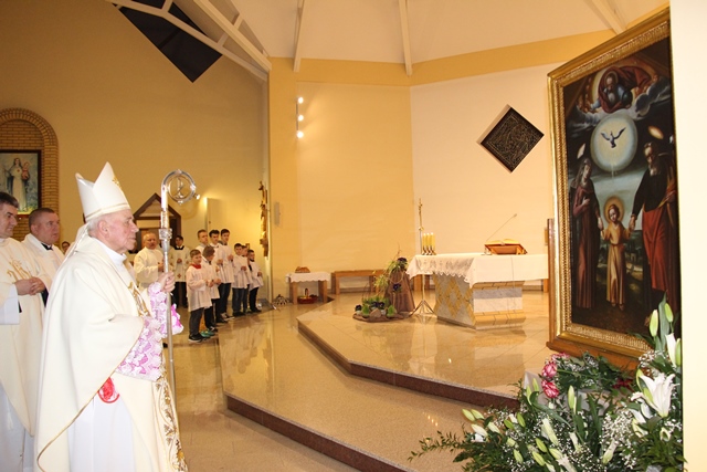 W homilii bp Stanisław Napierała przypomniał, że kopia obrazu św. Józefa Kaliskiego pobłogosławiona przez Jana Pawła II w Rzymie przemierzyła całą diecezję kaliską na początku jej istnienia. – Wszędzie św. Józef był przyjmowany po królewsku i zobaczyliśmy, że w każdej części diecezji ludzie kochają św. Józefa. Witali Go z miłością i wielką wiarą. I tak św. Józef rozpoczął scalanie naszej diecezji. Minęło już ponad 20 lat. W tym czasie powstały nowe parafie, a wśród nich Wasza parafia Matki Bożej Różańcowej, do której dzisiaj przybył św. Józef – powiedział celebrans.