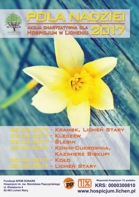 Kwesta na rzecz placówki rozpocznie się tradycyjnie w parafii pw. św. Doroty w Licheniu. W najbliższą niedzielę, czyli 26 marca, wolontariuszy ubranych w żółte koszulki z hospicyjnym logo wręczających napotkanym osobom żonkile spotkać będzie można przed i po każdej Mszy św. przy licheńskim kościele parafialnym. Tego samego dnia młodzież będzie także kwestować w parafii pw. św. Stanisława BM w Kramsku.