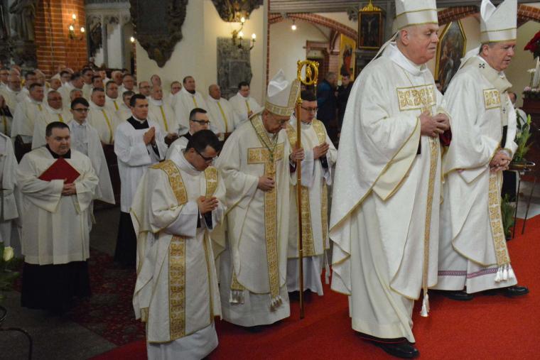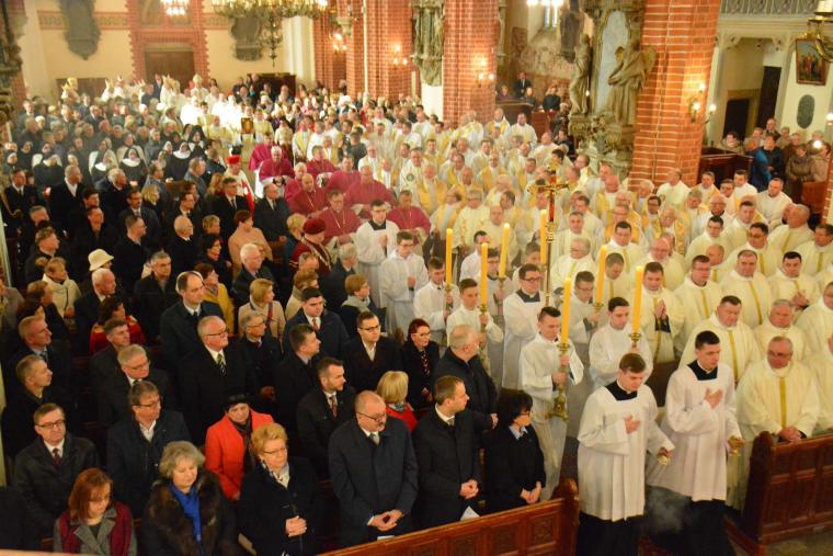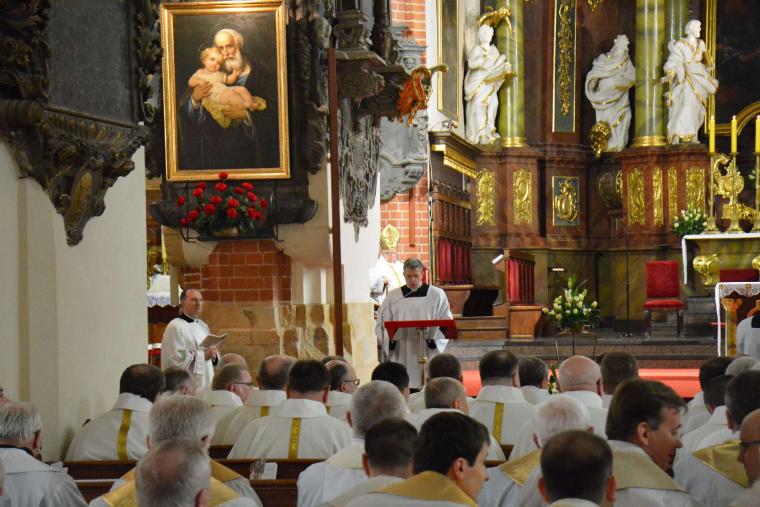 Przypomniał też, że przed dwoma tygodniami diecezja pożegnała zmarłego biskupa legnickiego Tadeusza Rybaka. Pierwszy biskup legnicki spoczął w krypcie katedralnej. To właśnie on, jako pierwszy biskup legnicki, w 1992 roku, podjął się trudu tworzenia nowej diecezji legnickiej.