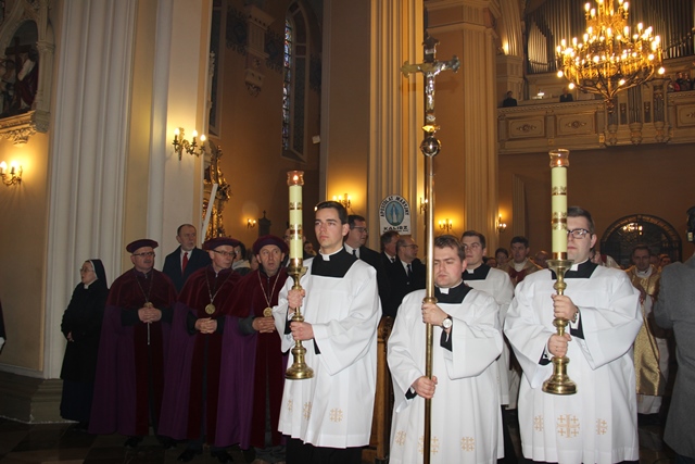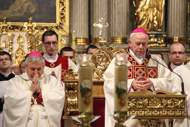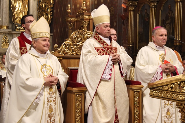 Witając biskupów, duchowieństwo i wiernych biskup kaliski Edward Janiak wskazał na św. Józefa, Opiekuna diecezji kaliskiej. - Z głębi serca pragniemy dziękować dobremu Bogu za wszystkie łaski, jakie nasza diecezja dostąpiła przez tę historyczną decyzję Jana Pawła II. Nadanie patrona św. Józefa całej diecezji to nas jeszcze bardziej zobowiązuje, bo mamy Opiekuna Kościoła Powszechnego jako naszego Opiekuna – podkreślił bp Janiak. Akcentował, że diecezja kaliska to nie tylko obiekty, ale przede wszystkim żywy Kościół. - Ks. Biskup Stanisław kierował Kościołem Kaliskim przez 20 lat i to jest piękny dar łaski Bożej, że może stanąć przy ołtarzu jako ten pierwszy świadek. Naszym obowiązkiem jest, abyśmy ten Kościół przekazali następnemu pokoleniu w nie gorszej kondycji duchowej – zaznaczył ordynariusz kaliski.