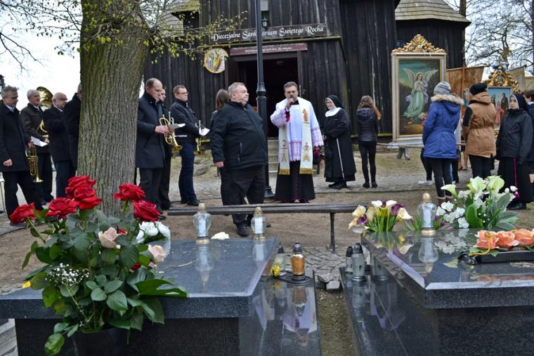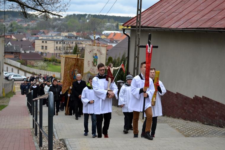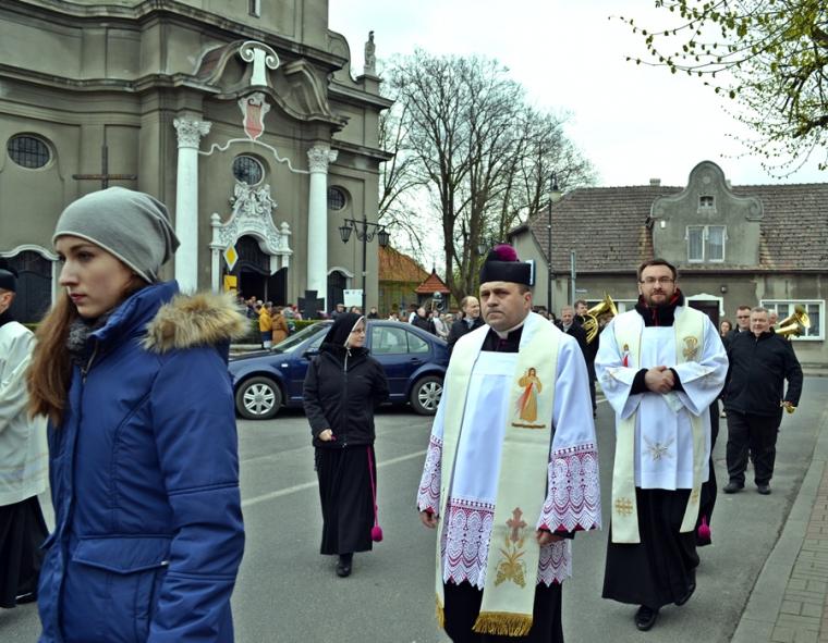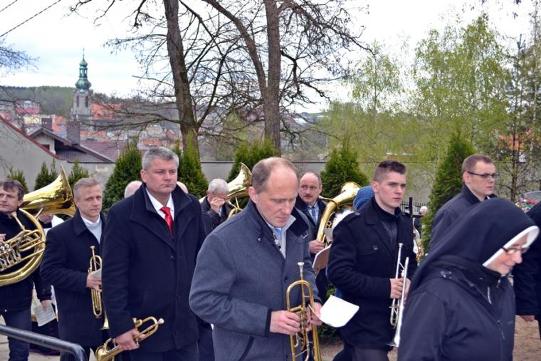 Mają Krakowianie znany chyba w całej Polsce, gromadzący tysiące wiernych odpust Emaus. Niewiele osób natomiast zapewne wie, że w niewielkiej miejscowości Mikstat( diecezja kaliska) co roku parafianie w Uroczystość Zmartwychwstania Pańskiego wyruszają w drogę do Emaus. Nie oznacza to jednak, że pielgrzymują w tym szczególnym czasie do Ziemi Świętej, chociaż zapewne wielu nosi w swym sercu pragnienie przeżycia tych dni właśnie tam. Mikstackie Emaus to procesja, która od stuleci odbywa się w tej miejscowości i prowadzi z kościoła farnego do Diecezjalnego Sanktuarium Świętego Rocha na wzgórzu za miastem. Jest znacznie krótsza niż ta, w którą wyruszyli uczniowie Jezusa z Jerozolimy do Emaus. Oni mieli do przebycia około 12 km, my około 1km. Jest jednak dla mikstackiej wspólnoty bardzo ważna, bo z jednej strony stanowi okazję do dania świadectwa wiary w zmartwychwstanie Jezusa Chrystusa, jest kontynuacją tradycji przodków, ale także czasem refleksji nad sensem życia nad tym, dokąd zmierzamy. Tradycyjnie, mikstaccy parafianie zebrali się w kościele farnym, by wyruszyć w procesji do Emaus. Ponieważ parafianie przygotowują się do Święta Miłosierdzia Bożego poprzez udział w nowennie, odmówiona została Koronka do Miłosierdzia Bożego. Następnie z paschałem, figurą Chrystusa zmartwychwstałego, z chorągwiami i feretronami wyruszyliśmy w kierunki Sanktuarium. W procesji obok kapłanów posługujących w naszej parafii ks. kan. Krzysztofem Ordziniakiem, ks. Krzysztofem Lipińskim uczestniczyli także ks. Ryszard Zieliński i ks. Mateusz Puchała. W rytm dźwięków w wykonaniu naszej parafialnej orkiestry pokonywaliśmy naszą drogę. Sanktuarium położone jest w centralnym punkcie cmentarza. Tu wielu uczestników procesji ma groby swoich bliskich. Dla nich przesłanie: Pan zmartwychwstał! nabiera tu szczególnego znaczenia. Daje nadzieję na spotkanie z tymi, którzy poprzedzili nas w pielgrzymce do Ojczyzny niebieskiej. W Uroczystość Zmartwychwstania Pańskiego orkiestra obchodzi rocznicę powstania. Warto dodać, że już 47. Stało się tradycją, że po dotarciu przed Sanktuarium uczestnicy mikstackiej procesji do Emaus zatrzymują się przy grobie założyciela orkiestry ks. kan. Bernarda Langkaua oraz jego następcy ks. kan. Kazimierza Mądrego na chwilę modlitwy. Modlitwie przy grobach kapłanów przewodniczył ks. kan. Krzysztof Ordziniak. Członkowie orkiestry złożyli w tym czasie znicze. Następnie w Sanktuarium odprawione zostały uroczyste nieszpory podczas których odczytana została Ewangelia mówiąca o uczniach zmierzających do Emaus. Słowa rozważania skierował do zebranych ks. Krzysztof Lipiński. Myślą przewodnią rozważania były słowa skierowane przez uczniów do Jezusa „ Ty jesteś chyba jedynym, który nie wie co w tych dniach wydarzyła się w Jeruzalem”. Kaznodzieje podkreślił, że opuszczenie Jezusa przez wszystkich. Jak podkreślił tak wielu było świadków czynionych przez niego znaków, cudów, a mimo to w nie zrobili niczego, gdy Jezus był krzyżowany. Ks. Krzysztof zaakcentował, że mimo tego Jezus nie odwrócił się ze swoją miłością od człowieka. Podkreślił, że także nam często wydaje się, że wiemy najlepiej jak powinno wyglądać nasze życie. To czego, jak wskazał kaznodzieja, najbardziej w życiu potrzebujemy to obecności Pana Jezusa. Tylko Jezus jest tym, który potrafi dać odpowiedź na wszystkie nasze pytania, a tych pytań jest w naszym życiu bardzo wiele kontynuował kaznodzieja. Postawą swego życia mówimy wielokrotnie „ Panie Boże, Ty się na tym nie znasz bo jak byś się znał, to by było inaczej” stwierdził ks. Krzysztof. Zaapelował do zebranych, by nie próbowali nigdy sami udzielać sobie odpowiedzi, wyjaśniać trudnych, niezrozumiałych spraw sami. Podkreślił, że Jezus jest obok nas, jest w nas, ale my możemy go nie dostrzeć. Kaznodzieja zachęcał do słuchania Boga. Wskazał, że uczniowie byli przy Jezusie, widzieli znaki, cuda, słuchali Jego słów, ale dopiero spotkanie ze Zmartwychwstałym Chrystusem sprawia, że ich wiara staje się wiarą żywą. Kaznodzieja zachęcając do refleksji, dlaczego Święta Zmartwychwstania są tak ważne powiedział: „ Te święta są okazją do tego, aby jeśli ktoś doświadczył tego, że Jezus jest naprawdę Bogiem żywym, to żeby swoją wiarę umocnił, jeszcze bardziej ją ożywił. A jeśli czasami w naszym życiu wiara jest ospała, przygaszona to jest to okazja do tego, żeby się ożywiła, a wraz z tą żywą wiarą zobaczymy, że Pan Bóg ukazuje nam odpowiedzi na wszystkie pytania naszego życia” .Ważne jest jednak podkreślił kaznodzieja byśmy chcieli tych odpowiedzi słuchać. Kończąc rozważanie ks. wikariusz wskazał: „ Jezus pokazał swym uczniom, że On dokładnie wiedział, co się tam w Jerozolimie wydarzyło, bo to on był właśnie w centrum tego wydarzenia. Pan przygotował dla nas stół, wielu skorzystało z tego zaproszenia. Mikstacka droga do Emaus A. D. 2017 była kolejną okazją do realizacji hasła roku duszpasterskiego „ Idźcie i głoście”. Szli i głosili napotykanym ludziom mikstaccy parafianie: Jezus żyje, zmartwychwstał, prawdziwie zmartwychwstał!