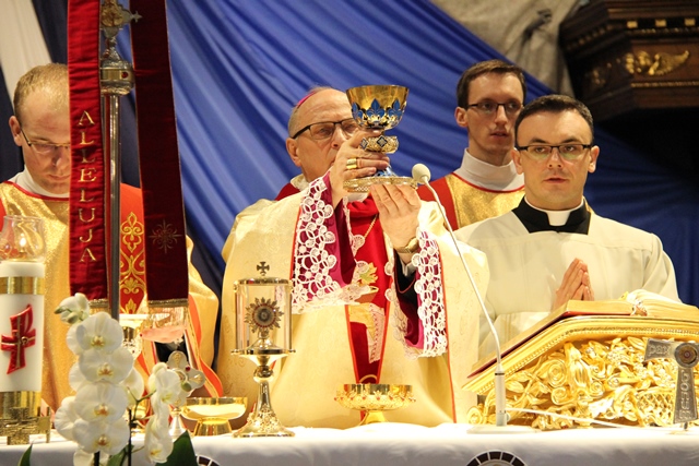 Bp Wiesław Mering przewodniczył Mszy św. w Sanktuarium św. Józefa w Kaliszu z okazji 72. rocznicy cudownego wyzwolenia obozu w Dachau.