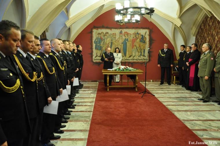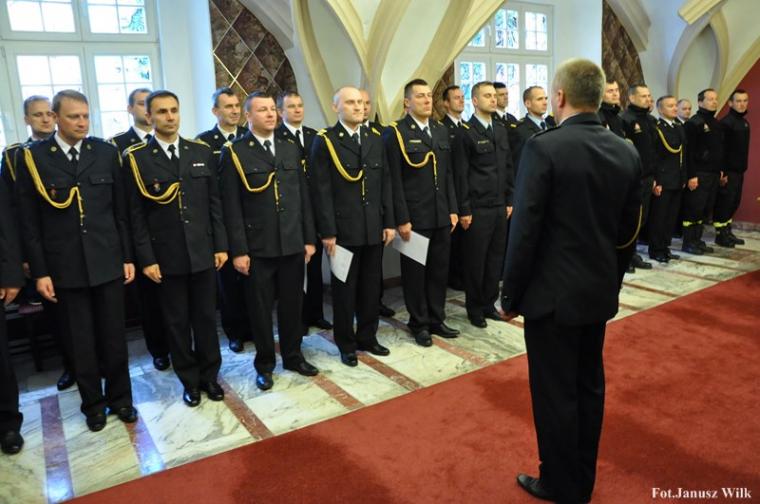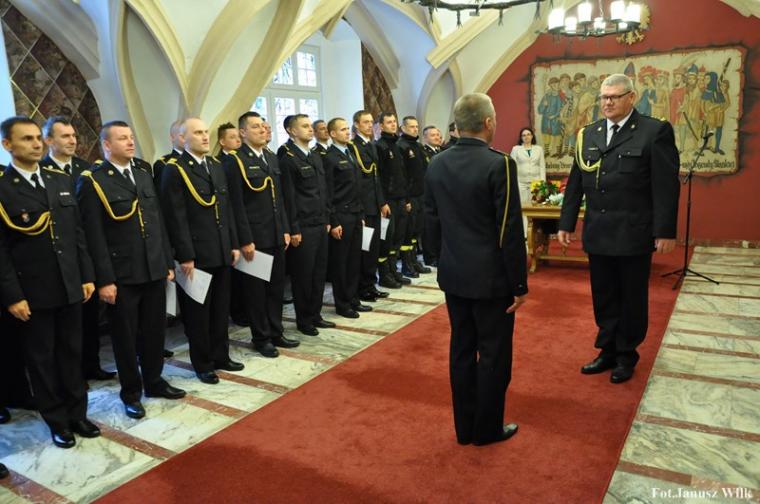 Dalsza część uroczystości odbyła się w średniowiecznej sali Ratusza miejskiego. Tam miała miejsce część apelowe, podczas której wręczone zostały nominacje na kolejne stopnie strażackie oraz odczytane listy gratulacyjne. Najmłodsi mieszkańcy miasta mieli też okazję, aby z bliska poznać sprzęt specjalistyczny, którym na co dzień dysponują strażacy niosąc pomoc osobom poszkodowanym w pożarach, wypadkach, klęskach żywiołowych.
