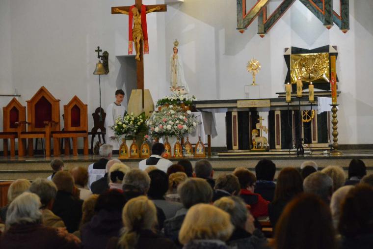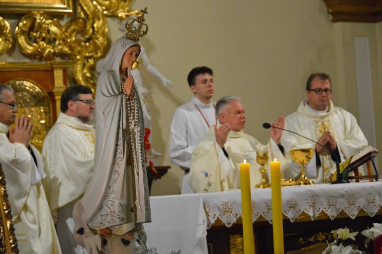 Homilię wygłosił ks. Bogusław Wolański, diecezjalny duszpasterz rodzin. Nawiązując do objawień w Fatimie podkreślił, że wybrzmiał w nich również temat rodziny. „W jednej z ostatnich wizji dzieci ujrzały nie tylko Matkę Bożą, ale też św. Józefa i Jezusa, a zatem miały wizję świętej Rodziny błogosławiącej światu. To nam podpowiada, że małżeństwo i rodzina są drogą Kościoła” – mówił ks. Wolański. Odnosząc się natomiast do wizji Hiacynty zaznaczył, że Matka Boża bardzo cierpiała z powodu rozwodów, wielu małżeństw żyjących bez sakramentu. Z kolei Łucja w liście napisanym pod koniec życia do przewodniczącego Papieskiego Instytutu Jana Pawła II dla studiów nad małżeństwem i rodziną podkreśliła, że przyszłość Kościoła i świata rozstrzygnie się w małżeństwach i rodzinach. „Dlatego gromadzimy się, aby się modlić, zawierzać siebie samych i nasze rodziny Maryi, i prosić Boga o potrzebne łaski. Wiarą i modlitwą możemy zdziałać wiele, możemy zmieniać świat” – zakończył kaznodzieja.