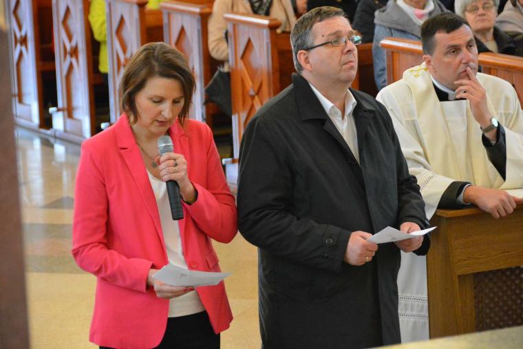 Po wspólnej modlitwie wyruszyła procesja różańcowa, w której niesiono min. figurę Matki Bożej Fatimskiej. Kolejna część spotkania miała miejsce w kościele Najświętszego Serca Pana Jezusa, gdzie Andrzej Lewek wygłosił drugą konferencję o duchowości małżeńskiej i roli ojca w rodzinie. Podczas adoracji najświętszego Sakramentu akt oddania rodzin diecezji legnickiej Matce Bożej odczytali Joanna i Dariusz Filistyńscy.