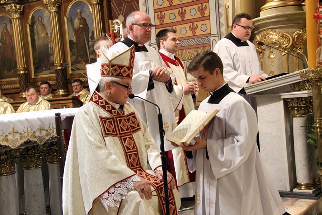 Stwierdził, że droga kapłana nie może różnić się od drogi Pierwszego Kapłana, Jezusa Chrystusa. – Bądźcie mężni w trudnościach, w kryzysach. Pamiętajcie. Słońce nie zawsze świeci. Przyjdą może kiedyś burze i nawałnice. W życiu Chrystusa było „hosanna”, ale było i „ukrzyżuj”. I w waszym życiu będzie „hosanna”. Będą chwile, gdy was będą ludzie chwalić, zachwycać się wami, ale będą chwile, kiedy was będą krzyżować, niesłusznie może oczerniać, przeinaczać wasze intencje. Nie zrażajcie się tym. Idźcie. Musicie pomóc dźwigać krzyż Chrystusowi – przekonywał hierarcha.