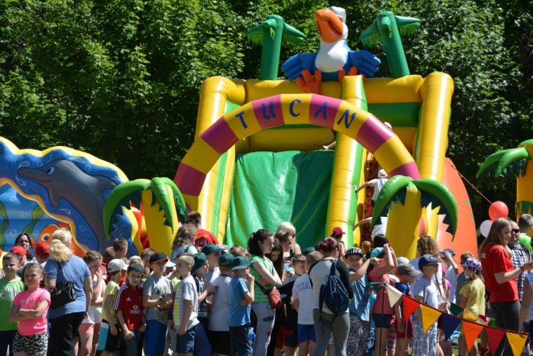 Jak co roku, program festynu był bardzo bogaty i dzieci mogły skorzystać z mnóstwa atrakcji. Każdy znalazł cos dla siebie. Były konkursy, gry i zabawy, występy zespołów tanecznych i wokalnych, można było poskakać na dmuchanych zamkach, pograć w piłkę oraz przejechać się policyjnym motocyklem, wsiąść do samochodu straży miejskiej, a także poznać pracę służby celnej i inspekcji transportu drogowego. Organizatorzy zadbali o to, każde dziecko uczestniczące w zabawie, otrzymało paczkę z łakociami przygotowaną przez sieć sklepów „Biedronka” oraz słodki poczęstunek.