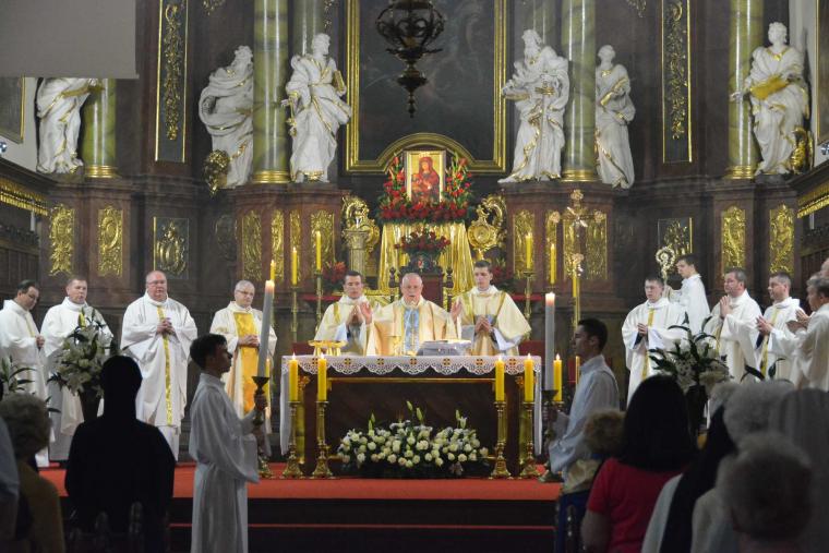 To również 20 rocznica koronacji ikony Matki Bożej Łaskawej z Krzeszowa. Specjalnie na tę okazję łaskami słynąca Ikona krzeszowska została przywieziona do Legnicy. Mszy św. dziękczynnej o g. 18,30 przewodniczył biskup legnicki Zbigniew Kiernikowski. Obecny był także bp Marek Mendyk, ks. Józef Lisowski, kanclerz Kurii Biskupiej, przełożeni seminarium oraz duszpasterze pracujący w Legnicy. Nie zabrakło też sióstr zakonnych oraz wiernych z miasta i okolic.