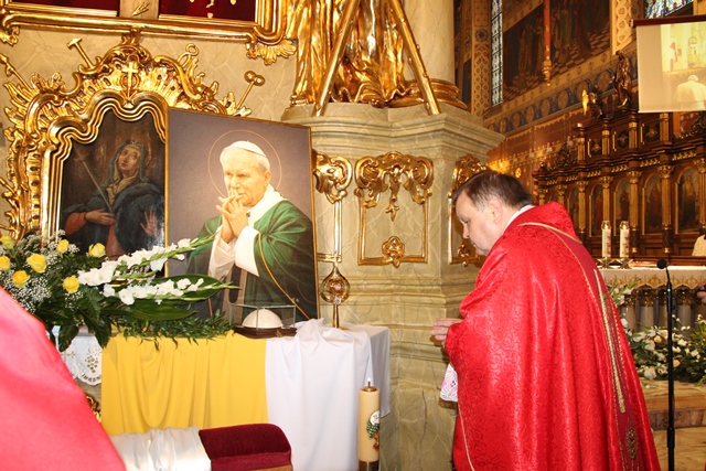 Witając relikwie św. Jana Pawła II ks. prał. Adam Modliński przypomniał, że papież 4 czerwca 1997 r. po odprawieniu Mszy św. przybył do katedry, gdzie modlił się przed Najświętszym Sakramentem. – Św. Janie Pawle II z wielką radością i entuzjazmem witaliśmy Ciebie w naszym mieście i w naszej młodej diecezji. Sprawowałeś Najświętszą Eucharystię, a podczas homilii ukazując nam św. Józefa – wielkiego obrońcę i troskliwego opiekuna Jezusa, przypomniałeś nam, jak wielką wartością jest rodzina oparta na fundamencie sakramentalnego małżeństwa mężczyzny i kobiety oraz jak wielką wartością i świętością jest życie każdego człowieka od poczęcia do naturalnej śmierci – mówił proboszcz kaliskiej katedry.
