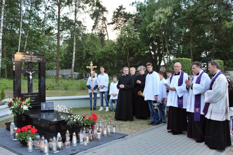 Na drugą część uroczystości upamiętniającej rocznice śmierci Kapłana Edmunda, ks. kanonik Przemysław Talaga sprawujący obecnie posługę proboszcza w parafii w Chynowej zaprosił wszystkich obecnych na cmentarz, gdzie poświęcono nagrobek Śp. Ks. Prałata Edmunda Sieczki. Został on ufundowany wspólnie przez rodzinę Ś.p. Kapłana i wspólnotę parafialną.