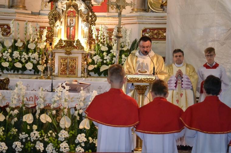 W mikstackiej wspólnocie parafialnej (diecezja kaliska) uroczysta suma sprawowana była o godz. 9:00. Przewodniczył jej ks. wikariusz Krzysztof Lipiński, współcelebransem był ks. kan. Krzysztof Ordziniak, który wygłosił do licznie zebranych wiernych homilię. Rozpoczynając powiedział: „ Świat bez Eucharystii, staje się światem bez Chrystusa, bez Jego miłosierdzia, a ostatecznie światem bez sensu”. Zwrócił uwagę, że kiedy przyjmujemy Komunię Świętą przenika nas światło, gdy żyjemy w grzechu, żyjemy w ciemności. Kaznodzieja podkreślił, że współczesny człowiek coraz częściej żyje w przeświadczeniu o swojej bezgrzeszności. Ta postawa prowadzi do tego, że przestaje odczuwać potrzebę Mszy Świętej, spowiedzi, a wreszcie samego Boga.