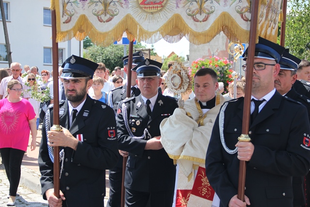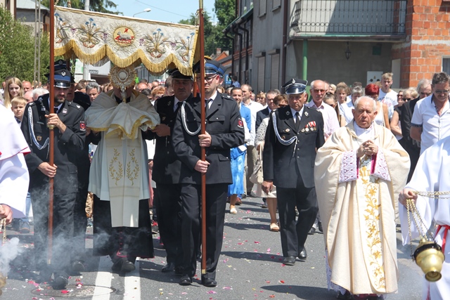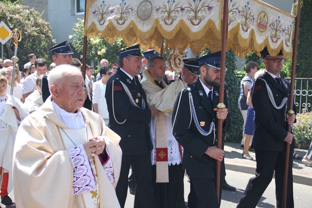 Po Mszy św. wyruszyła procesja do czterech ołtarzy, którą prowadził bp Stanisław Napierała. Przy czwartym ołtarzu na placu Wolności biskup udzielił błogosławieństwa Najświętszym Sakramentem na cztery strony świata.