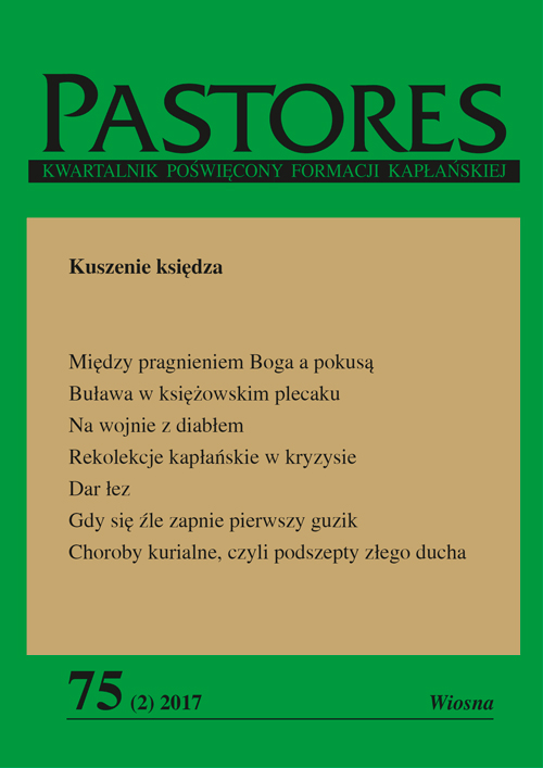 3. Istnieją wybitnie kapłańskie kuszenia, swoiste choroby zawodowe (rozmowa z ks. S. Haręzgą), w których paliwem pokus stać się mogą wzniosłe ideały i szlachetne uniesienia ducha. Przewracamy się o własne ograniczenia psychofizyczne – zwłaszcza, gdy udajemy, że ich nie ma (A. Rusak). Miejsce przy sercu Jezusa wykorzystujemy do szukania lepszych kąsków na uczcie życia – logikę służby zamieniamy niepostrzeżenie na logikę przywilejów (P. Szyrszeń SDS). Własny sukces niebezpiecznie mylimy z sukcesem historii zbawienia – z postępem Bożej sprawy na ziemi (M. Zioło OCSO).