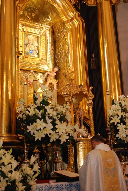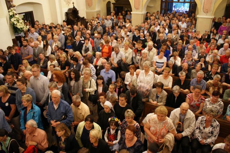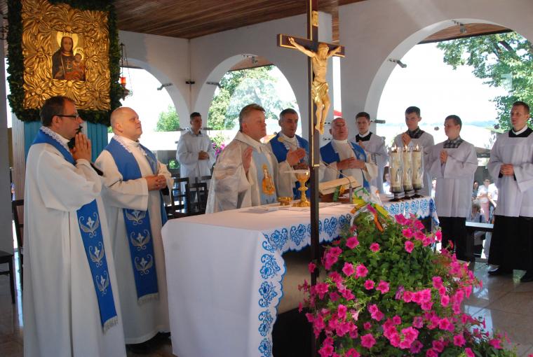 Podczas wieczornej Eucharystii swoją pielgrzymkę do Matki Bożej Tuchowskiej przeżywali nadzwyczajni szafarze Komunii Świętej. Celebransem i zarazem kaznodzieją był ks. dr Bolesław Margański – diecezjalny duszpasterz odpowiedzialny za formację nadzwyczajnych szafarzy. Każdy człowiek potrzebuje matki (…) zwłaszcza małe dziecko - mówił. Ona ma serce, które ogarnia wszystkie dzieci i każde z nich z osobna. Kaznodzieja przypomniał, że celem obecnego roku duszpasterskiego jest prowadzenie nas poprzez doświadczenie wiary, chrztu do apostolatu. Obecny rok duszpasterski związany jest z dwoma słowami: świadectwo i misje. Aby dawać dobre świadectwo wiary, trzeba być zjednoczonym z Chrystusem. Papież Franciszek zachęca nas do wyjścia na obrzeża, do tych ludzi, który żyją poza Kościołem. Z oblicza Chrystusa promieniuje oblicze Kościoła, świętość Jego wyznawców. Ks. Bolesław przypomniał historię, gdy na jeziorze Genezaret Jezus wszedł do łodzi Piotra i w ten sposób wszedł do łodzi Kościoła już na zawsze. Obok Jezusa jest Szymon Piotr - sternik. On wyznaje, że jest słabym grzesznikiem. Jest to drugie oblicze Kościoła: wspólnota grzeszników, którzy wyznają swą winę. Cierpienie może być karą za grzechy, ale może też służyć zbawczym celom, co pokazał nam Jezus na krzyżu. Po zmartwychwstaniu dowiódł On, że wśród owoców cierpienia jest chwała nieba w słowach: „Wy będziecie się smucić, ale smutek wasz zamieni się w radość”. Jest to widoczne również w porównaniu do kobiety rodzącej w bólu, dla której później pozostaje radość. Bolesław Prus również mówi o przeżywaniu cierpienia w słowach: „szczęśliwy, kto zamiast narzekać na cierpienia, uczy się od nich”.