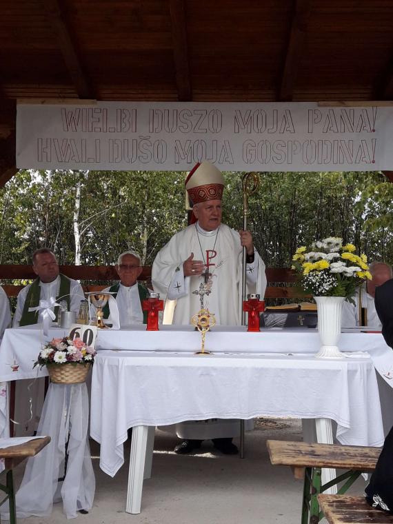 W homilii Ksiądz Biskup podkreślił misyjny wymiar życia Kościoła, mówił też o wielkiej roli polskich katolików w diecezji Banja Luka. Wspomniał też o wielkim znaczeniu obchodzenia jubileuszy zakonnych i kapłańskich. Mszę św. sprawowano w języku chorwackim i polskim, pieśni i czytania były na przemian w dwóch językach. Nad ołtarzem umieszczony był transparent z napisem: Wielbi dusza moja Pana! Hvali dušo moja Gospodina!