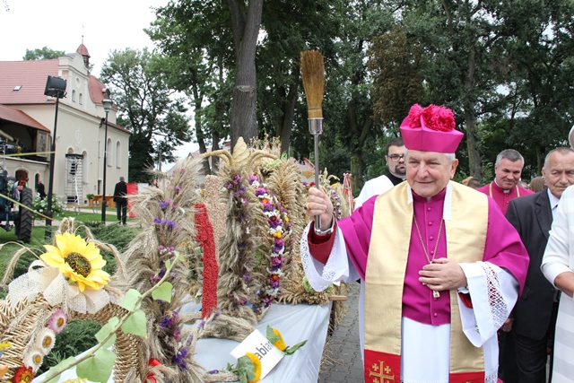 Zachęcał do modlitwy w intencji rolników. – Niech dobry Bóg, główny gospodarz naszej ziemi, przyjmie dziś naszą wdzięczność za to, że pozwolił nam zebrać to, co wyrosło na polach. Niech obudzi w nas większy szacunek do ziemi. Niech naszemu Bogu będzie chwała i wdzięczność, a wam wszystkim tu zgromadzonym niech będzie udzielona z niebios łaska zdrowia, pokoju, radości i zgody – powiedział bp Janiak.