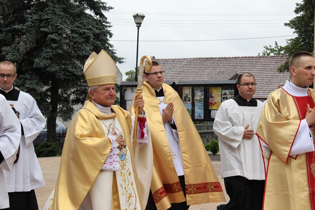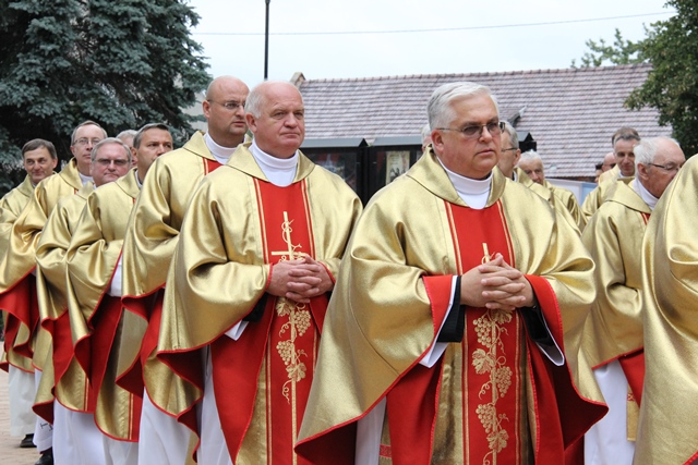 Dziękował rolnikom za ich trud pracy na roli. – Drodzy rolnicy tu obecni, przyjmijcie od nas dziś nasze podziękowanie za wasz trud, za wasze poświęcenie. Was dzisiaj w szczególny sposób polecamy opiece dobrego Boga. Za waszą troskę o chleb powszedni naród jest wam wdzięczny – podkreślił hierarcha.