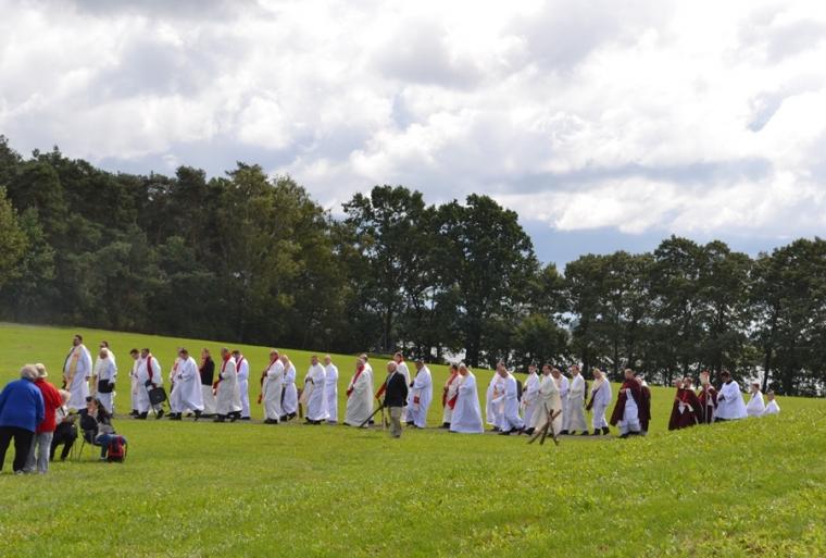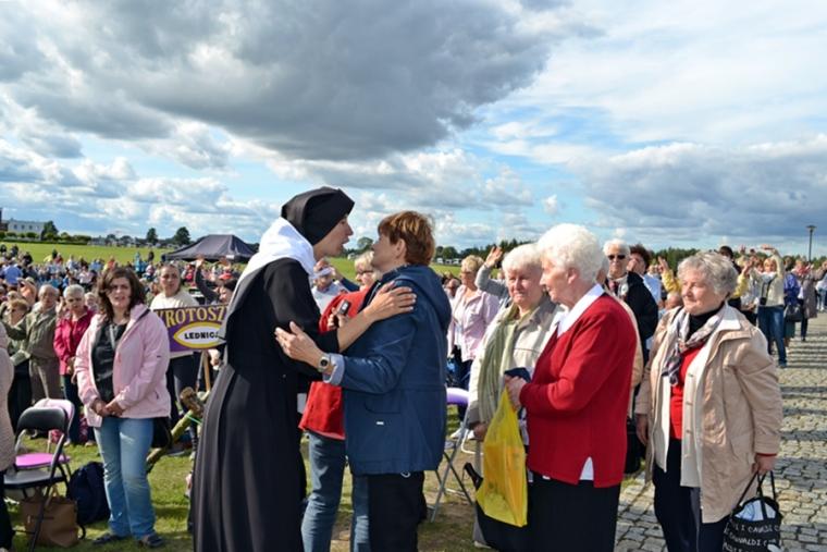 Z Gniezna pojechaliśmy na Pola Lednickie, gdzie odbywało się spotkanie seniorów. W tym roku jego hasłem przewodnim były słowa „ Idź i kochaj”. Spotkanie na Lednicy rozpoczęło się gimnastyką. Punktualnie o godz. 12:00 włączyliśmy się w modlitwę Anioł Pański.