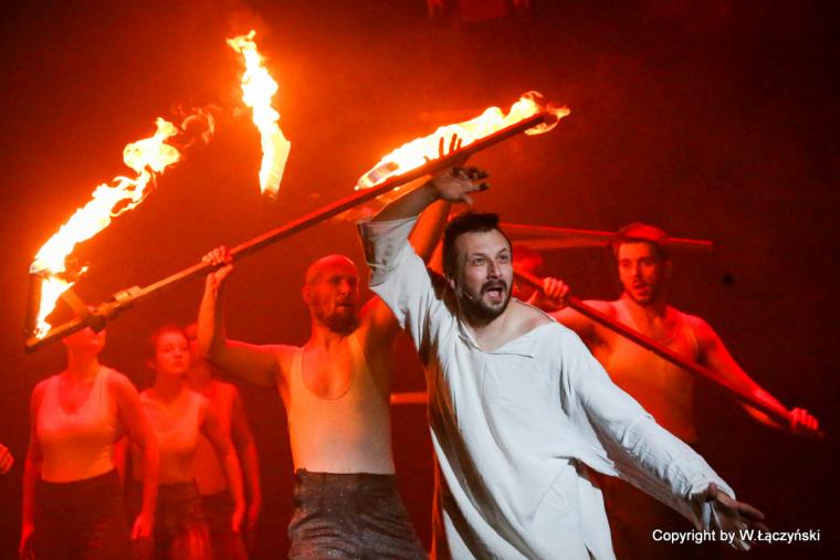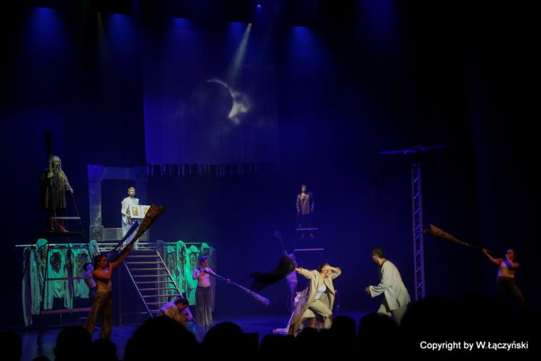 Przedstawienie, zrealizowane w konwencji teatru totalnego, wykorzystuje rozliczne środki ekspresji - emocjonalny ruch, taniec współczesny, dynamiczną muzykę będącą kompilacją rocka i muzyki klasycznej, przestrzenne formy scenograficzne, oświetlenie efektowe i projekcje video.