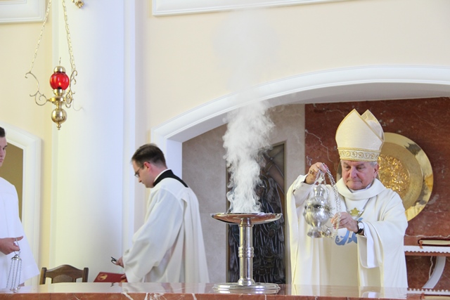 Witając biskupa, kapłanów i wiernych ks. Robert Lewandowski podkreślał, że ta świątynia została wybudowana trudem wielu ludzi. Dodał, że nie byłoby jej, gdyby nie charyzmatyczna postawa i szlachetne kapłańskie życie ks. prał. Józefa Sieradzana, który latach 80. odkrył potrzebę stworzenia w tym miejscu ośrodka duszpasterskiego, a potem parafii.