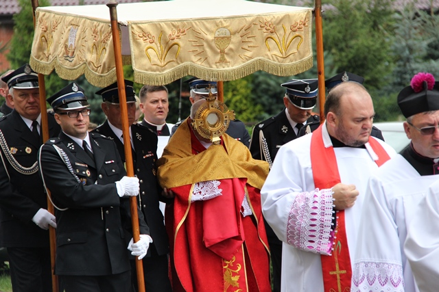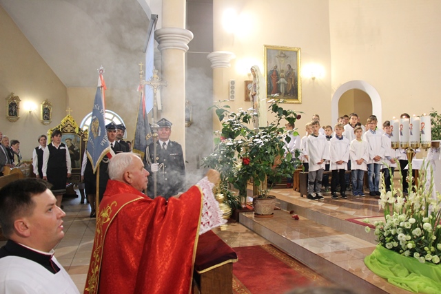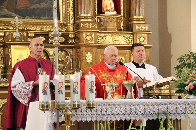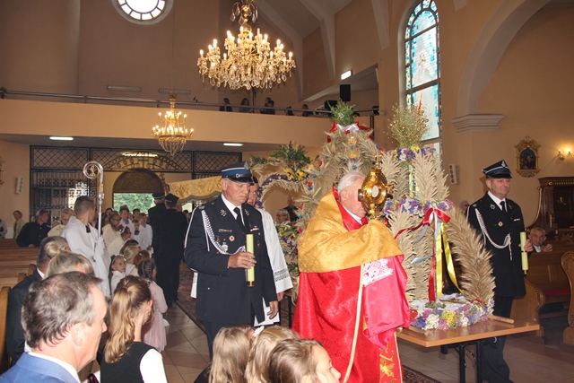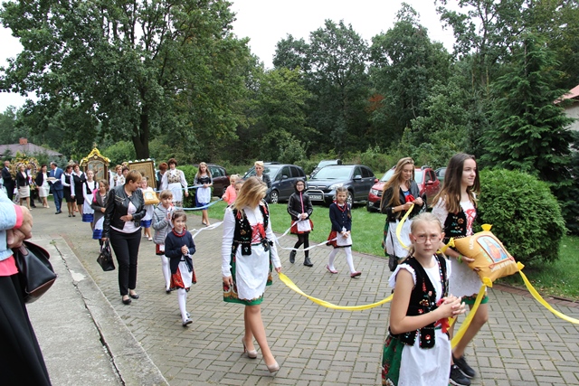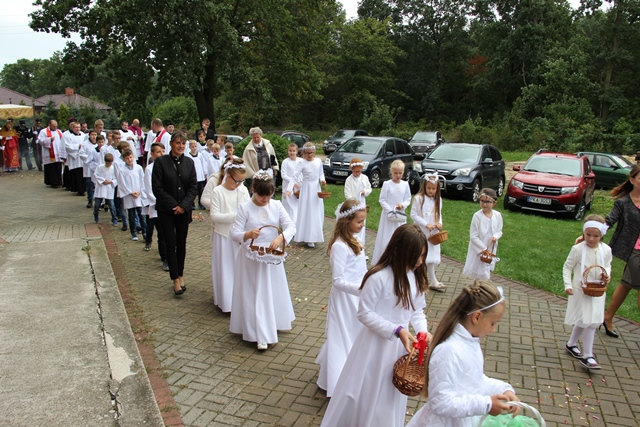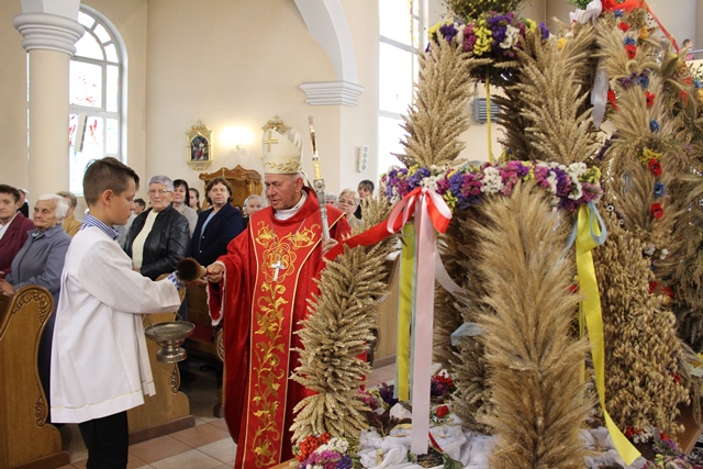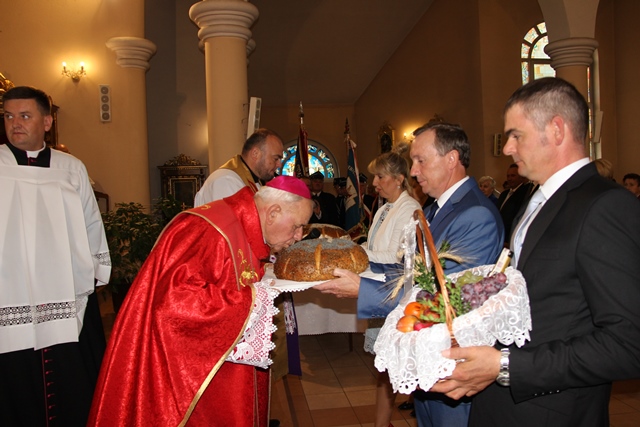 Podczas Mszy św. biskup poświęcił wieńce żniwne wykonane z tegorocznych plonów. Uroczystość odpustową zakończyła procesja wokół kościoła i błogosławieństwo Najświętszym Sakramentem.