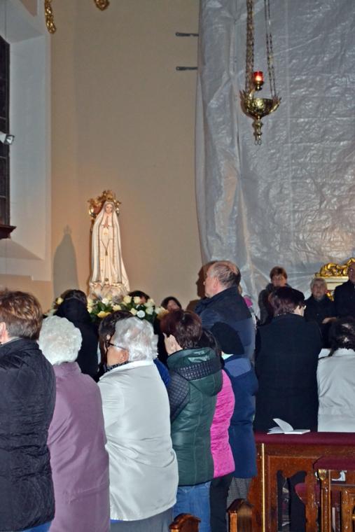 Podczas różańca fatimskiego rozważane były tajemnice bolesne. W pierwszej tajemnicy bolesnej modlitwą w sposób szczególny objęliśmy papieża Franciszka. Rozważanie każdej tajemnicy zakończone było postanowieniem. To po pierwszej tajemnicy zawarte zostało w słowach: „W chwilach samotności, niezrozumienia przez ludzi będę łączył się z Jezusem i ofiarował swoje cierpienia dla zbawienia świata”. Trudne, ale ważne dla naszego duchowego rozwoju postanowienie wybrzmiało po rozważaniu drugiej tajemnicy bolesnej. Zachęcało ono zebranych, by za przykładem Jezusa przyjmowali cierpienia w milczeniu oraz troszczyli się o czystość duszy i ciała.