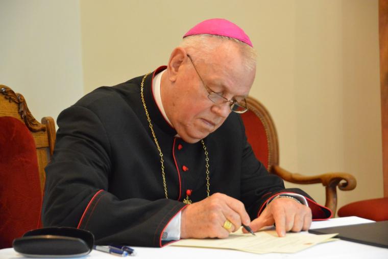 Kanclerz legnickiej kurii biskupiej ks Józef Lisowski odczytał protokół przekazania diecezji, który został podpisany przez księży biskupów i radę konsultorów.