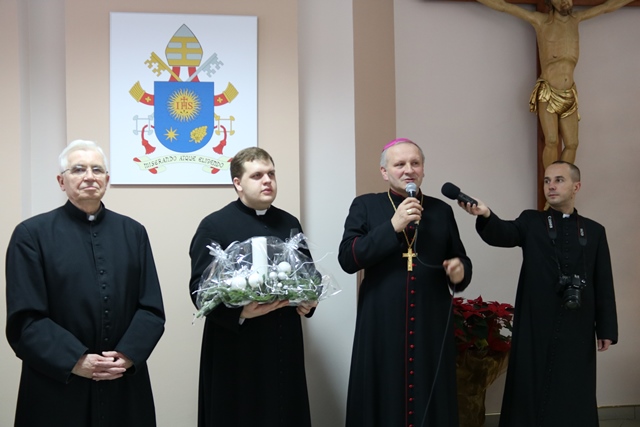 Druga część spotkania obyła się w refektarzu, gdzie bp Łukasz Buzun złożył katechetom życzenia i przełamał się opłatkiem. W spotkaniu wzięło udział ok. 300 katechetów.