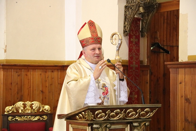 Mszy św. w kościele parafialnym pw. św. Stanisława Kostki przewodniczył bp Łukasz Buzun, który w homilii przybliżył sylwetkę patrona wskazując, że był on człowiekiem pobożnym codziennie przystępującym do komunii św.