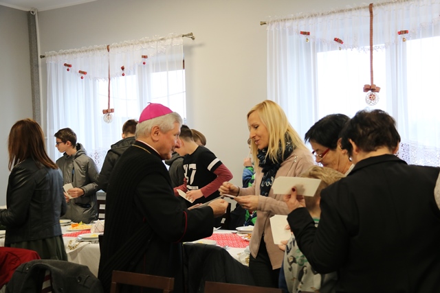 Po Mszy św. biskup kaliski Edward Janiak przełamał się opłatkiem z rodzinami i zasiadł do wspólnej wieczerzy.