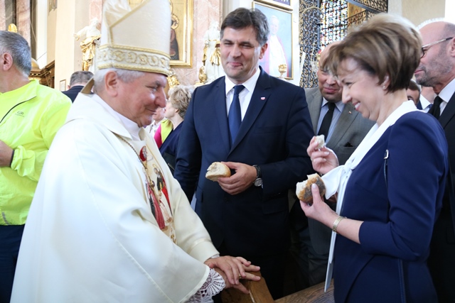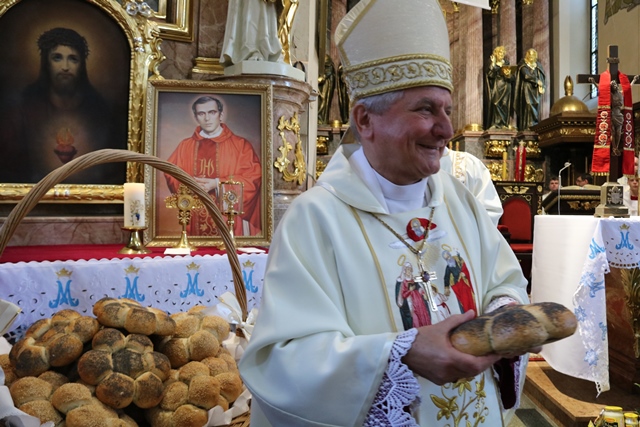 Tradycyjnie już po Mszy św. biskup podzielił się chlebem ze zgromadzonymi w kaliskiej bazylice.