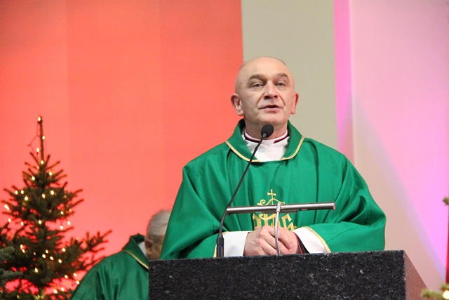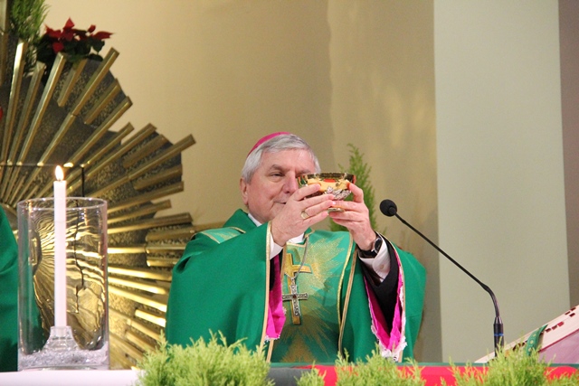 Spotkanie opłatkowe poprzedziła Msza św. w kościele św. Pawła Apostoła w Ostrowie Wielkopolskim pod przewodnictwem biskupa kaliskiego Edwarda Janiaka.
