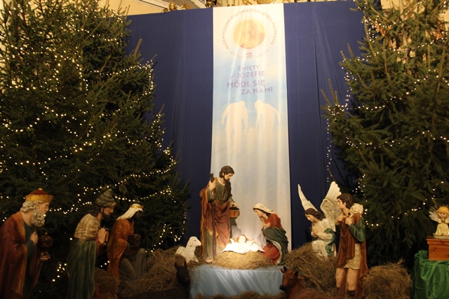 Przed rozpoczęciem Eucharystii w procesji biskup kaliski Edward Janiak zaniósł figurkę Dzieciątka do żłóbka.