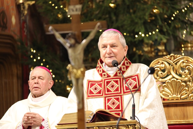 Nawiązując do wigilijnego stołu podkreślał, że dzielenie się chlebem to dzielenie się sobą, swoim sercem i miłością. - Dziś stajemy przy stole, na którym położony jest chleb. Cokolwiek dobrego robimy w życiu da się przełożyć na chleb, a co nie da się przełożyć na chleb nie jest dobre, jest niemoralne, jest złe. Cały wysiłek ojca, matki, praca codzienna, trudy, cierpienia dadzą się przełożyć na chleb. Przy jednym stole siada rodzina, siadają małżonkowie. Kto nie jest zdolny usiąść przy jednym stole to rozwodzi się. Kto nie potrafi usiąść przy jednym stole ten nie posiada ducha życzliwości, braterstwa, pojednania – zaznaczył hierarcha.