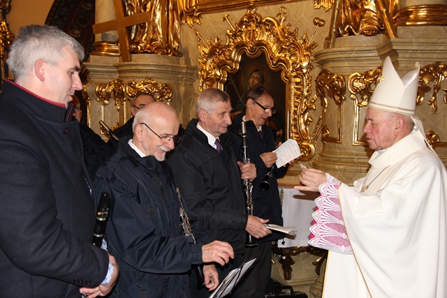 Po Mszy św. biskupi przełamali się opłatkiem z wiernymi. Uroczystość uświetniła orkiestra „Gród nad Prosną” i chór „Canticum”.