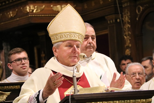 Zachęcał wiernych, aby odważnie świadczyli o Chrystusie. - Św. Jan Paweł II zachęcał nas, abyśmy odważnie szli do wspólnoty Unii Europejskiej. Mówił jak prorok, że przyjdzie moment, kiedy Polska będzie musiała wobec Europy dać świadectwo korzeni chrześcijańskich i właściwie dzisiaj się to dzieje. To nic, że ktoś powie, że zacofany. Stajemy po stronie ochrony życia nie dlatego, że tak mówi papież czy biskup, ale dlatego, że jest takie prawo naturalne, prawo Boże i tego nikt nie może zmienić przez głosowanie – stwierdził ordynariusz diecezji kaliskiej.