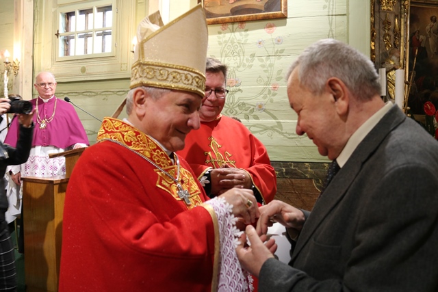 Podczas uroczystości biskup kaliski odznaczył Kazimierza Madziałę Srebrnym Pierścieniem Św. Józefa.
