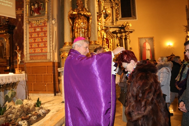Zaznaczył, że obrzęd posypania głów popiołem przypomina znikomość ludzkiego życia. - Za chwilę na znak przyjęcia programu wielkopostnej odnowy przyjmiemy na nasze głowy popiół. Posypanie popiołem mówi nam „człowieku nie przywiązuj się do tego, co ziemskie, bo niczego nie zabierzesz na tamten świat”. Popiół jest symbolem oczyszczenia duchowego, uwolnienia od grzechu, przyjęcia Bożego Miłosierdzia, pojednania się z Panem Bogiem, gotowości do współpracy z Panem Bogiem – mówił kaznodzieja.