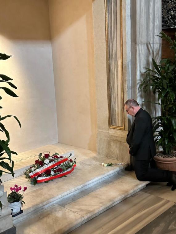 Pierwszego dnia uczestnicy spotkania, a więc przedstawiciele polonijnych wspólnot z całej Europy, nawiedzili grób papieża Franciszka w Bazylice Santa Maria Maggiore, gdzie Delegat Konferencji Episkopatu Polski ds. Duszpasterstwa Emigracji Polskiej Bp Robert Chrząszcz złożył kwiaty.