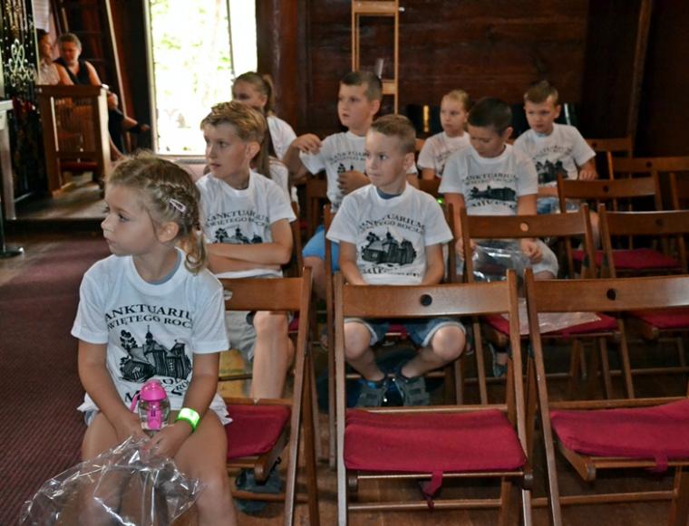 Trwają przygotowania duchowe do uroczystości odpustowych ku czci św. Rocha w Mikstacie. Mimo wakacyjnego, sobotniego dnia dzieci w godzinach przedpołudniowych przyszły na kolejne spotkanie w ramach VIII edycji Szkoły Świętego Rocha. Spotkanie rozpoczęło się modlitwą . Był w czasie tego spotkania czas na śpiew i zajęcia na świeżym powietrzu. Ich organizacją zajęła się s. Małgorzata. Były kolejne informacje o życiu św. Rocha. Święty Roch był pielgrzymem, a jego pielgrzymi szklak prowadził przez Francję i Włochy. Więc były w Rochowej Szkole zajęcia językowe. Poprowadziła je Pani Iza. Poprzez tegorocznej Szkoły młodzi poznają dziedzictwo kulturowe. W sobotnie przedpołudnie odbyli wirtualną wędrówkę szlakiem kapliczek, figur i krzyży przydrożnych znajdujących się w Mikstacie. Niespodziankę dla uczestników Rochowych spotkań przygotował ich inicjator i organizator ks. kan. Krzysztof Ordziniak. Jaką? Każde dziecko otrzymało „firmową” koszulkę Szkoły Świętego Rocha. Pięknie się w nich prezentują.