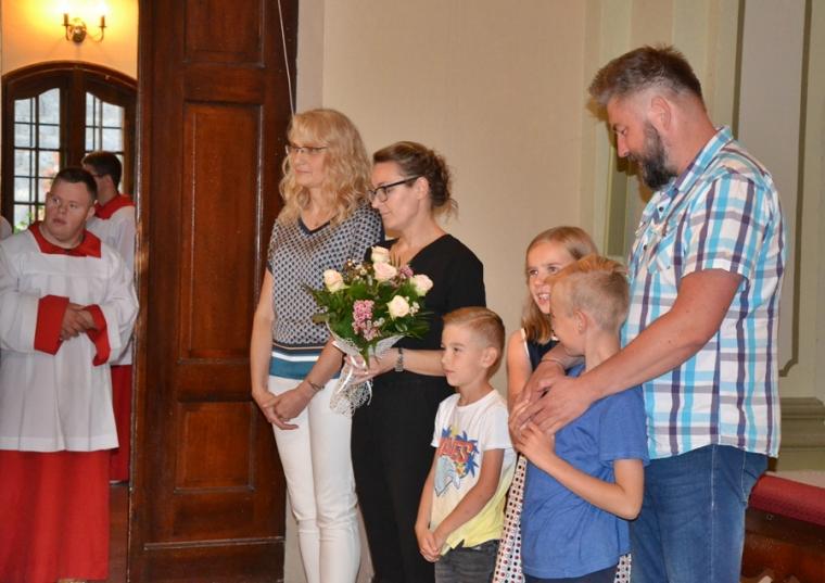 Po Mszy Świętej nadszedł czas na życzenia dla Solenizanta. Najpierw w imieniu całej wspólnoty parafialnej złożył je ks. proboszczowi główny celebrans, ks. kan. Grzegorz. Były oczywiście życzenia Bożego błogosławieństwa, opieki Maryi. Ks. kan. powiedział m.in. „ Życzę Ci, abyś był jak święty Krzysztof, który pomagał pielgrzymom przedostać się się z jednego brzegu na drugi. Abyś Ty był tym, który potrafi ludzi , którzy zostali Ci powierzeni, przeprowadzić do Domu Ojca”. Znalazł się w tych życzeniach „ Rochowy” akcent, bo posługę kustosza sanktuarium ks. kan. Krzysztof spełnia z wielkim zaangażowaniem.Potem przyszedł czas na życzenia od przedstawicieli parafian. Życzenia ks. Proboszczowi złożyła delegacja Liturgicznej Służby Ołtarza, dzieci, rada parafialna, zespół charytatywny, przedstawiciele wspólnot działających w parafii.