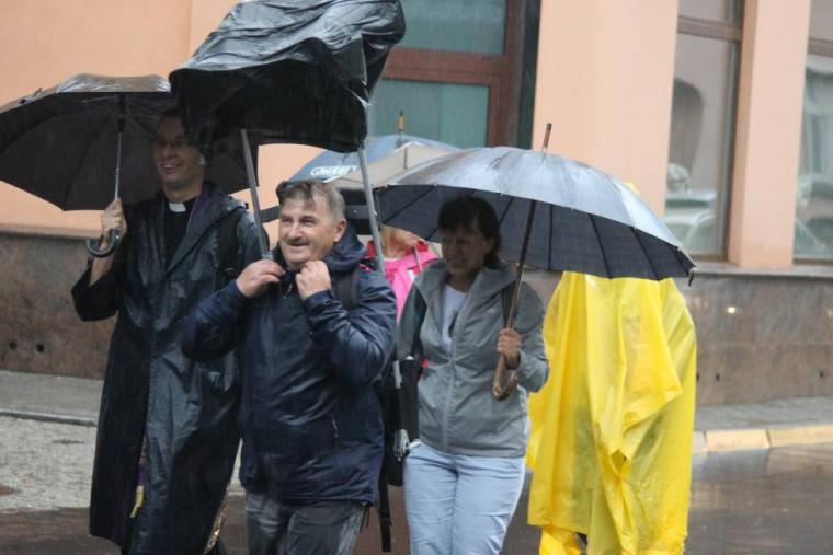 Pielgrzymka wyruszyła w sobotni wieczór sprzed budynków Starostwa Powiatowego w Krotoszynie do Sanktuarium Matki Bożej Pocieszenia w Lutogniewie. Na czele szli starosta krotoszyński Stanisław Szczotka oraz burmistrz Krotoszyna Franciszek Marszałek. Krzyż niósł radny Rady Miejskiej Krzysztof Kierzek. Za nimi radni, pracownicy urzędów i jednostek organizacyjnych.
